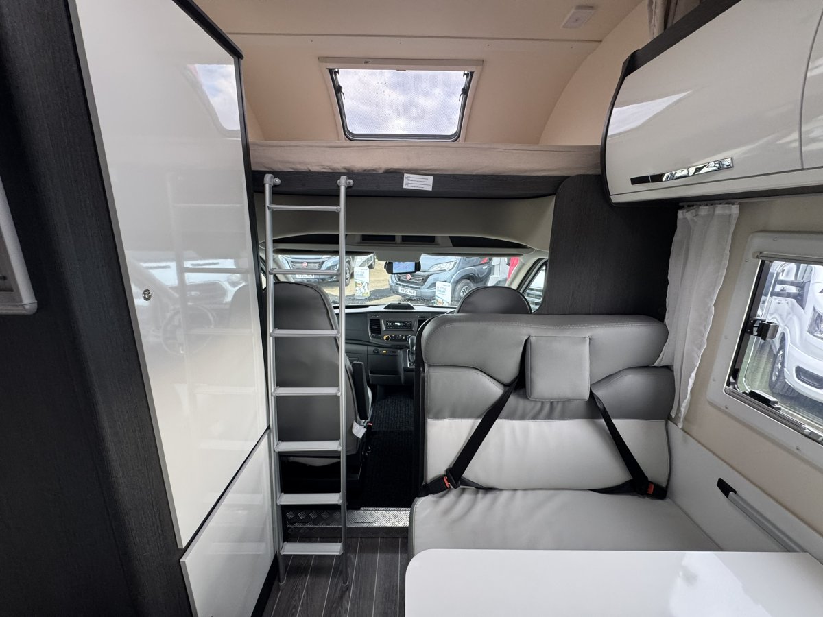 Fitted as standard are automatic transmission, dual reversing camera, compressor 12v fridge/freezer, gas/electric heating and hot water, custom sliding windows, an omnidirectional Status aerial and Isofix car seat points. This vehicle also has the benefit of the driver pack upgrade which includes cab air conditioning, cruise control, multi-function steering.