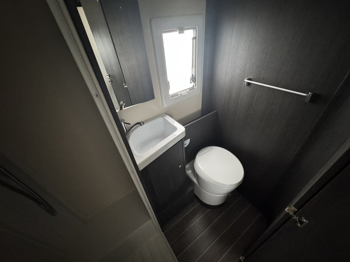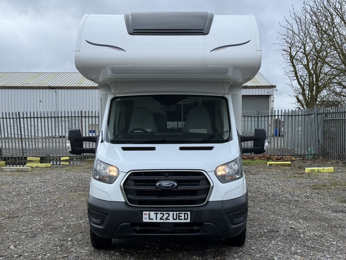 Based on a Ford Transit chassis with a 2.0 litre 130bhp engine and a 6-speed automatic transmission. This bespoke design is fantastic for families looking to explore the outdoors. Sleeping up to 6 people you can find a fixed double bed over the cab, fixed bunk beds in the rear and a double bed in the dinette area. In the kitchen you will find a 3-burner gas hob, oven, grill, stainless-steel sink and a large fridge/freezer. The sought-after layout has its own shower cubicle, a separate vanity sink and cassette toilet with electric flush.