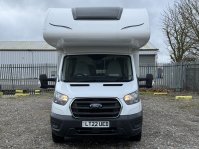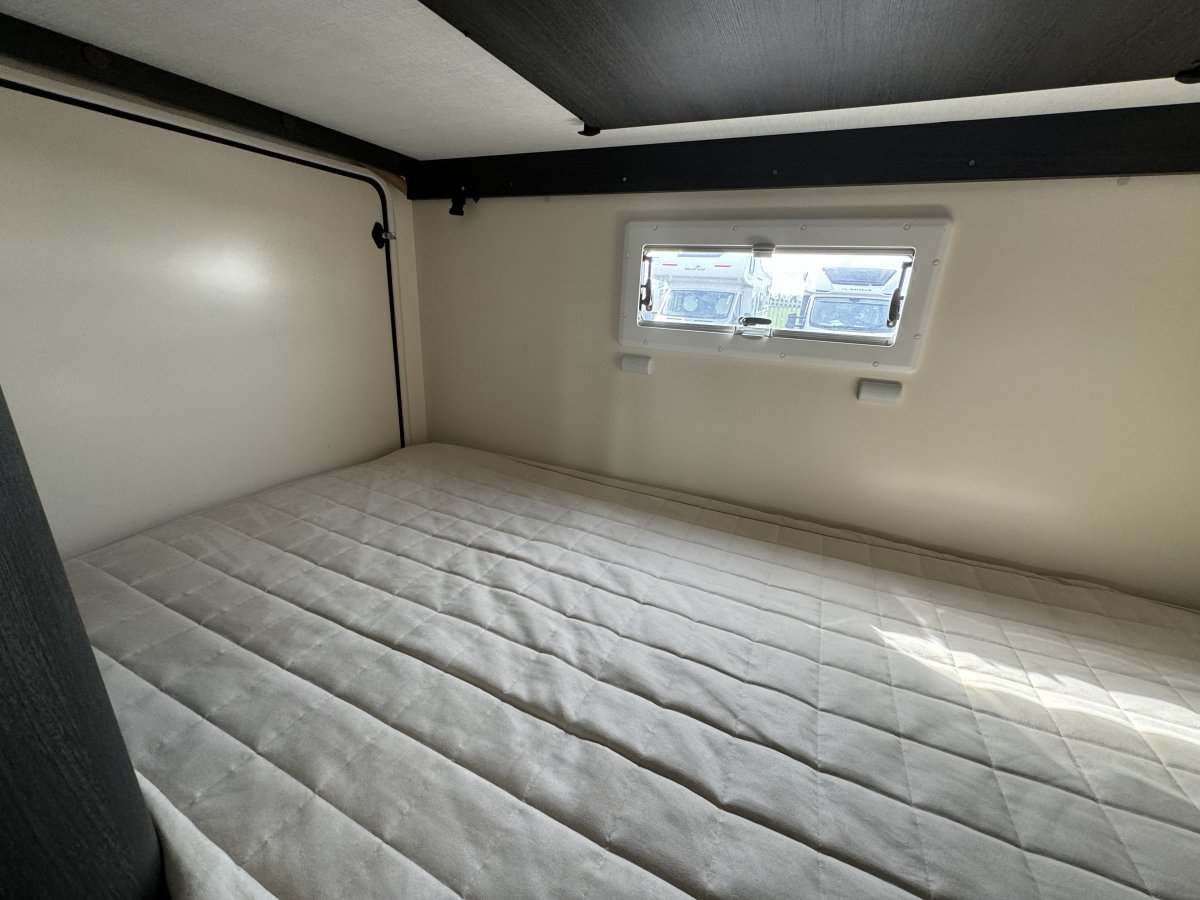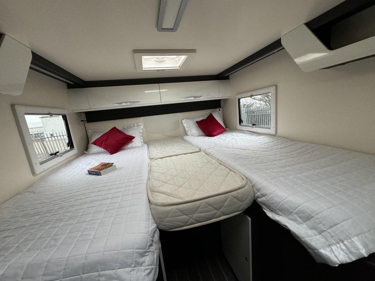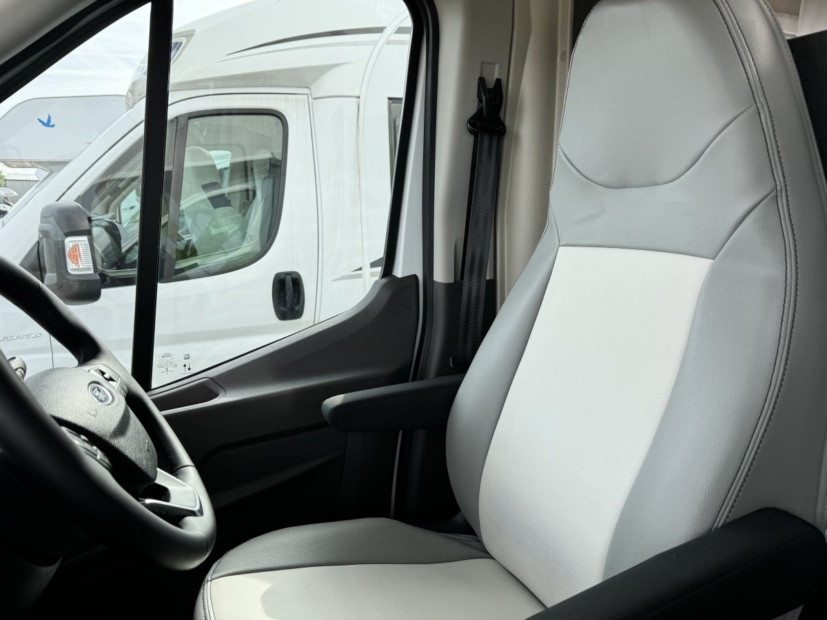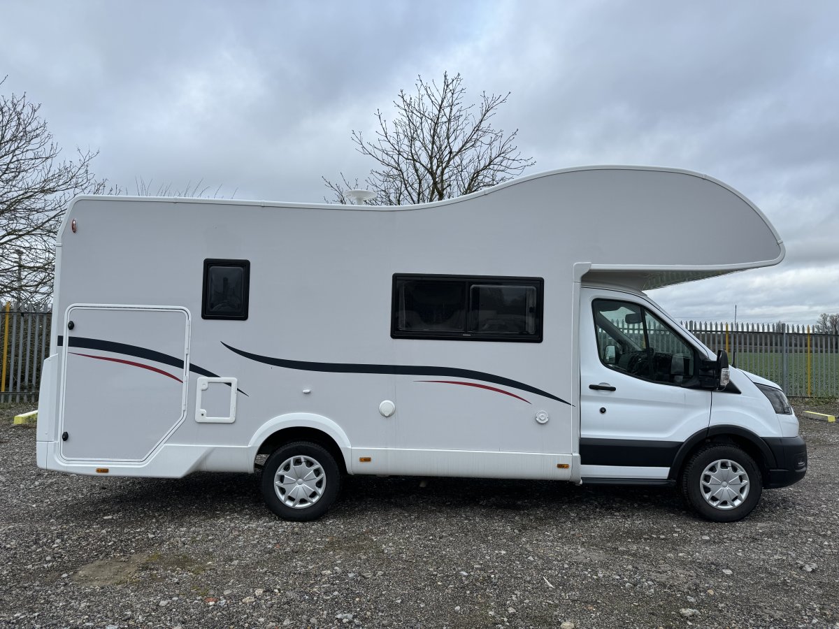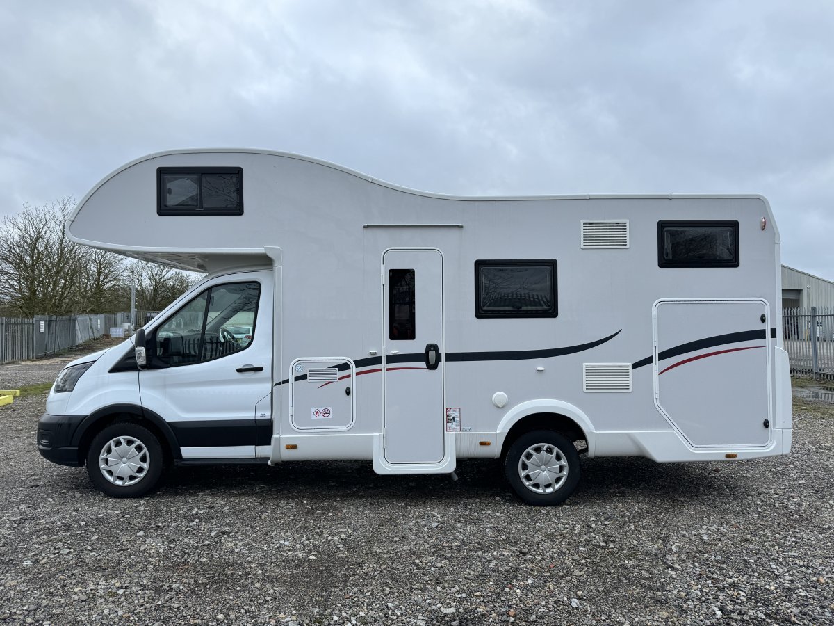 Based on a Ford Transit chassis with a 2.0 litre 130bhp engine and a 6-speed automatic transmission. This bespoke design is fantastic for families looking to explore the outdoors. Sleeping up to 6 people you can find a fixed double bed over the cab, fixed bunk beds in the rear and a double bed in the dinette area. In the kitchen you will find a 3-burner gas hob, oven, grill, stainless-steel sink and a large fridge/freezer. The sought-after layout has its own shower cubicle, a separate vanity sink and cassette toilet with electric flush.