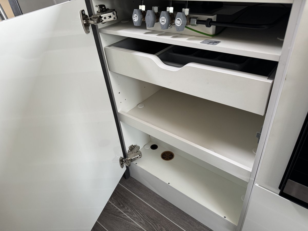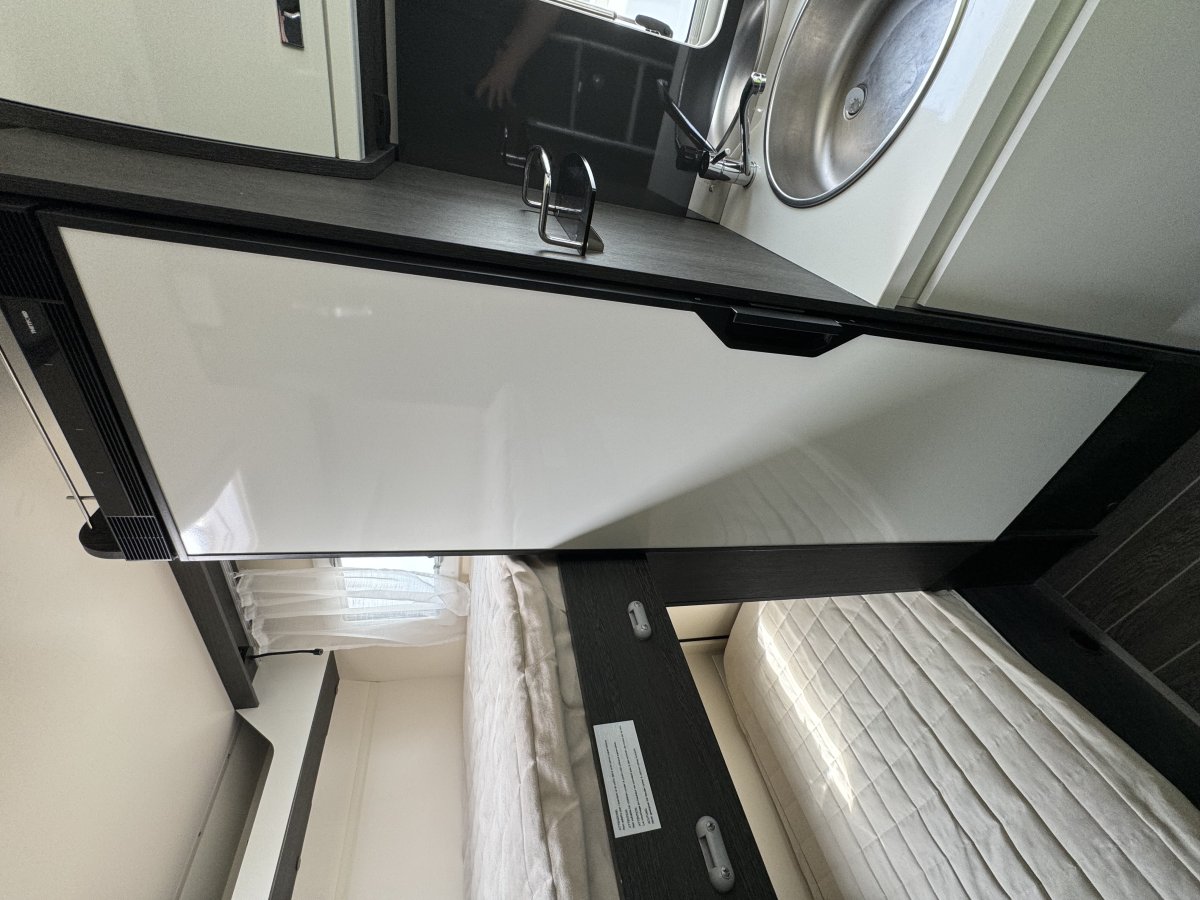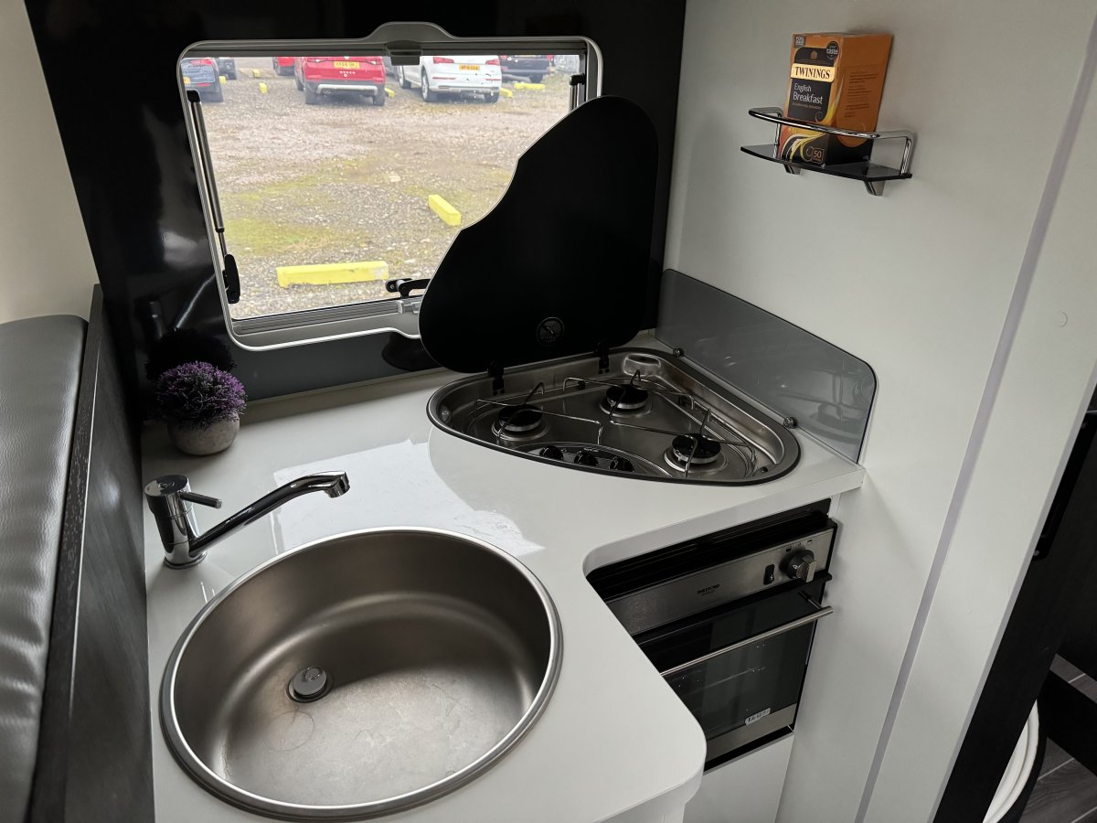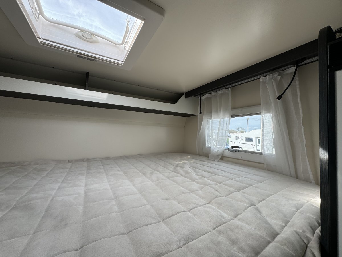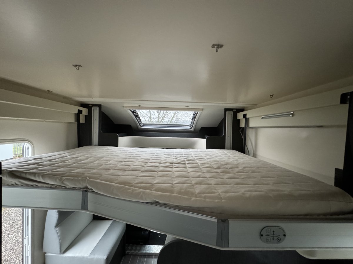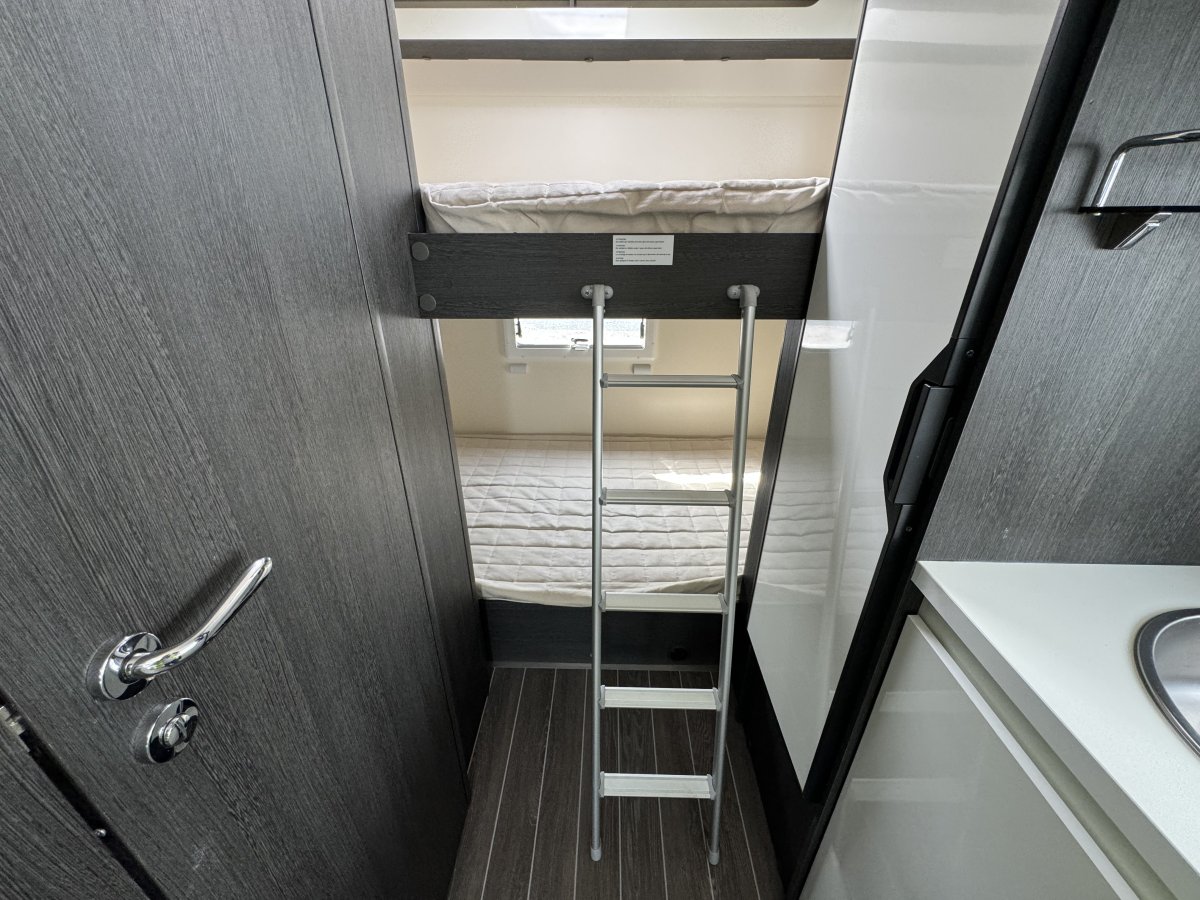Based on a Ford Transit chassis with a 2.0 litre 130bhp engine and a 6-speed automatic transmission. This bespoke design is fantastic for families looking to explore the outdoors. Sleeping up to 6 people you can find a fixed double bed over the cab, fixed bunk beds in the rear and a double bed in the dinette area. In the kitchen you will find a 3-burner gas hob, oven, grill, stainless-steel sink and a large fridge/freezer. The sought-after layout has its own shower cubicle, a separate vanity sink and cassette toilet with electric flush.
