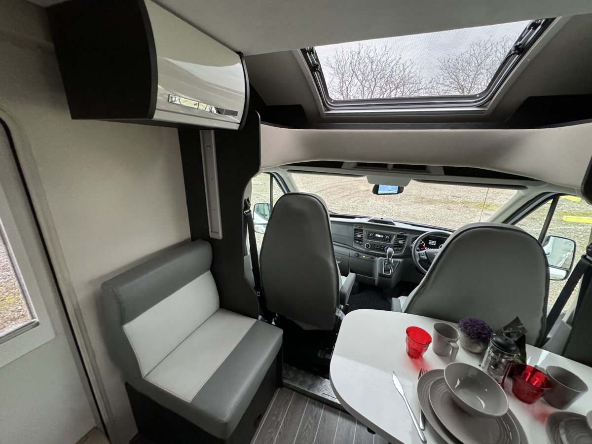 Fitted as standard are automatic transmission, dual reversing camera, compressor 12v fridge/freezer, gas/electric heating and hot water, custom sliding windows, an omnidirectional Status aerial and Isofix car seat points. This vehicle also has the benefit of the driver pack upgrade which includes cab air conditioning, cruise control, multi-function steering.