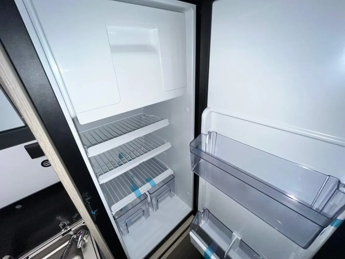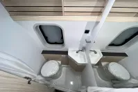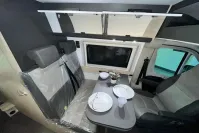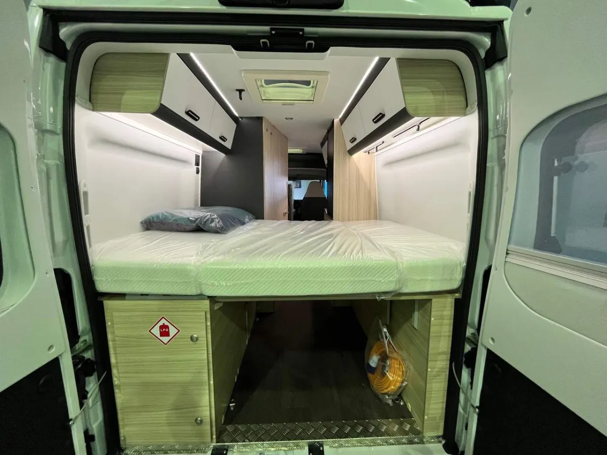 Featuring a fixed rear double bed, there's no need to pack away your sleeping space each day - just relax and unwind. The automatic transmission ensures an easy and stress-free drive, whether you're exploring the coutryside or cruising through the city streets. Inside, you'll find a modern and spacious layout with a well-equipped kitchenette, a practical washroom with a shower and toilet, and clever storage solutions throughout. Its compact size makes it easy to park and maneuver, while still offering all the essentials for a comfortable adventure.