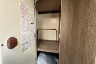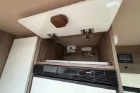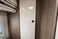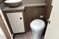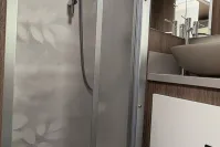 At the rear, the spacious bathroom includes a separate shower cubicle, vanity sink, and toilet—providing all the comforts of home. The Truma heating and hot water system ensures year-round comfort, whether you're touring in summer or winter.