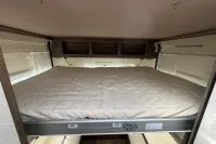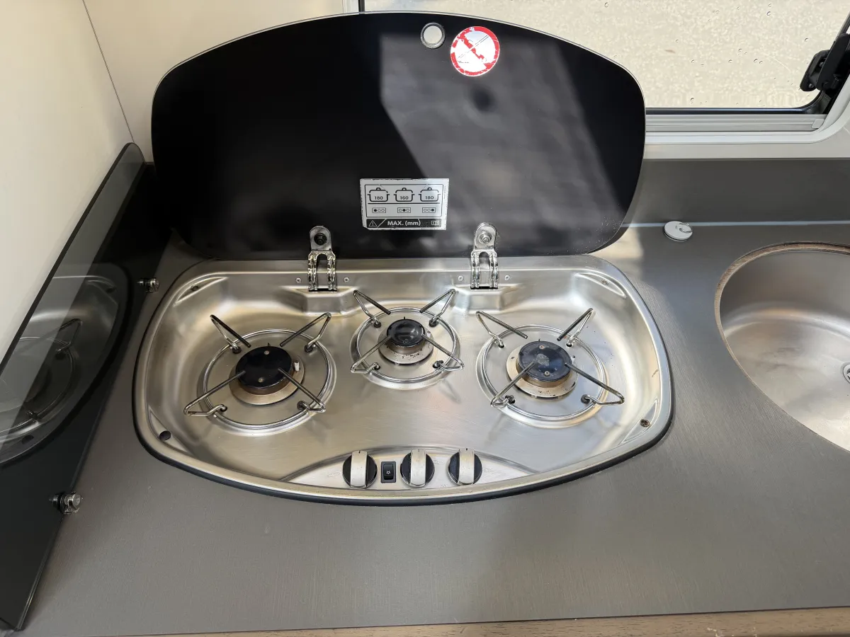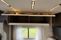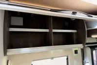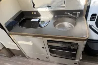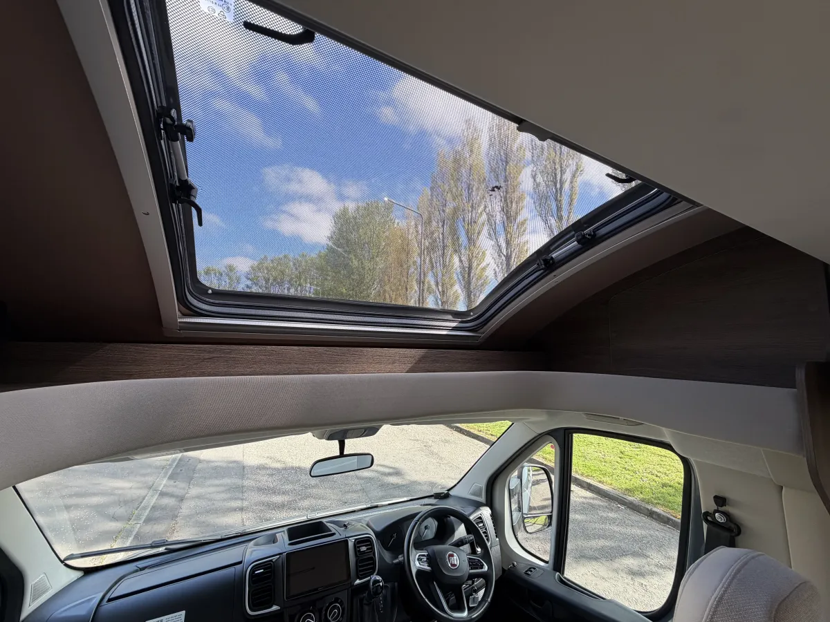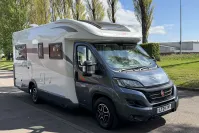 This 4-berth motorhome includes four travelling seats and generous garage space for all your gear. Additional features such as mesh flyscreens, a leisure battery, and a roof-mounted solar panel support off-grid adventures. The exterior is equally impressive, with alloy wheels, a reversing camera, and a BBQ gas point enhancing both style and practicality.