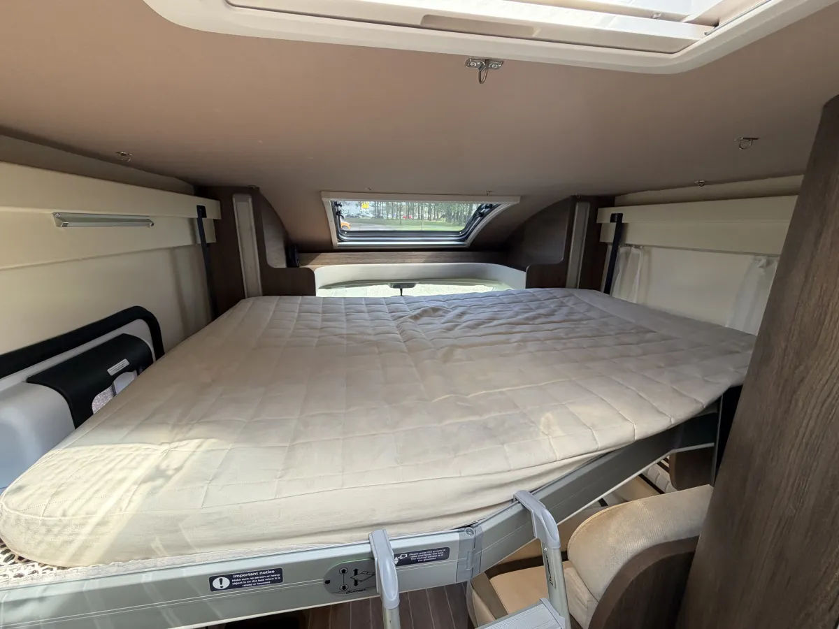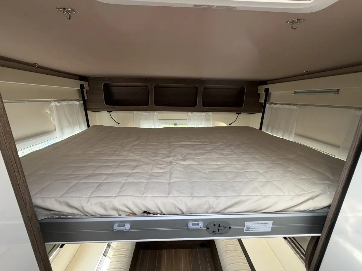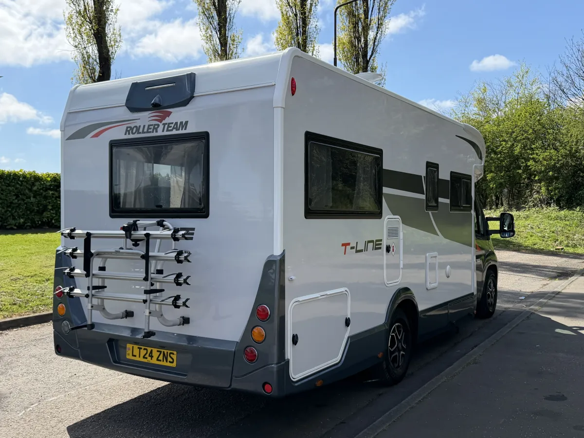 The Roller Team T-Line 700 is a luxurious motorhome crafted for those who crave adventure without compromising on comfort. Powered by a robust 140bhp Fiat Ducato 2.2L engine and paired with a smooth 9-speed automatic gearbox, it delivers a confident and effortless driving experience. Features like cruise control and adjustable cabin seats ensure long-distance journeys are as comfortable as they are enjoyable.