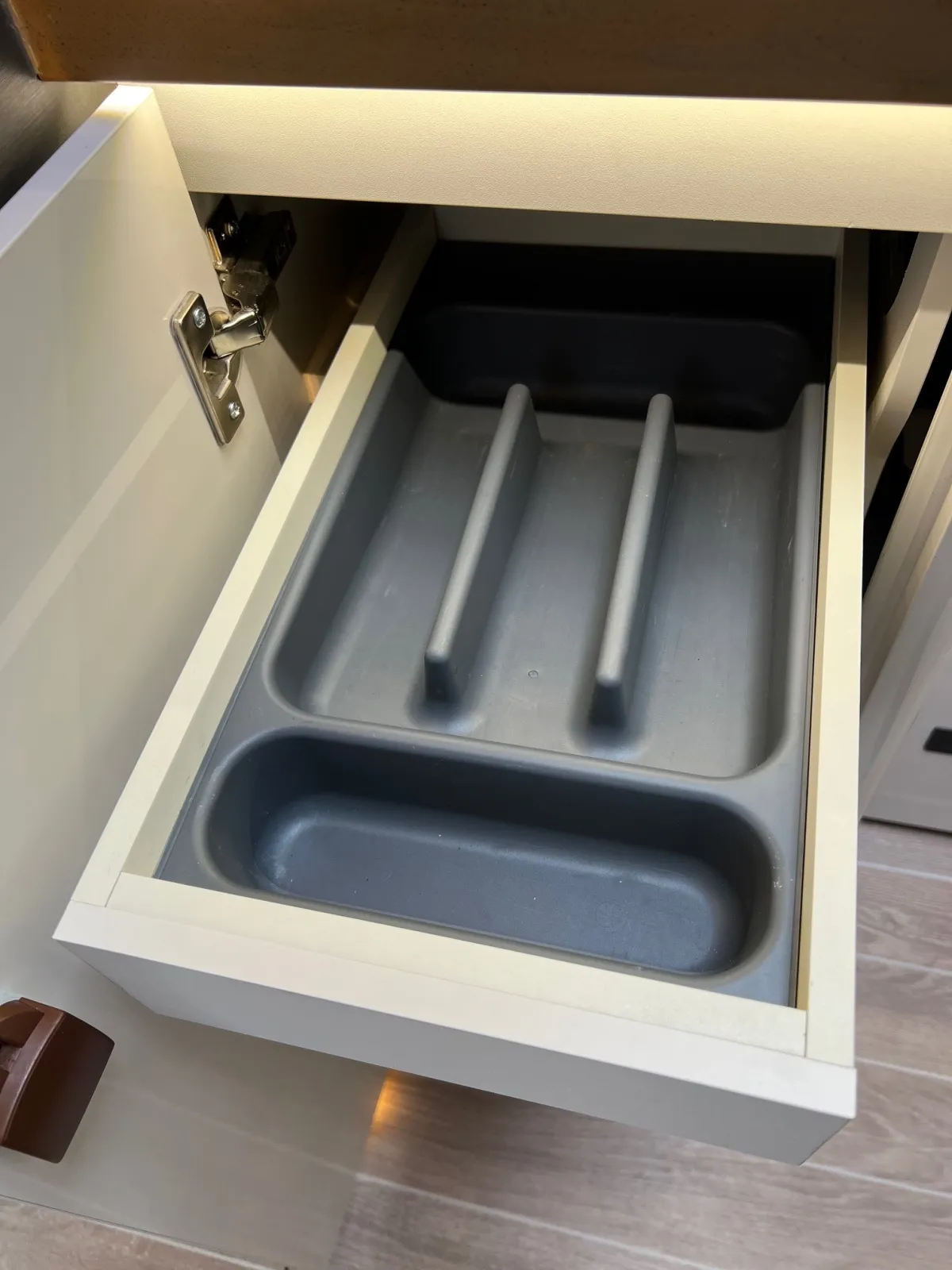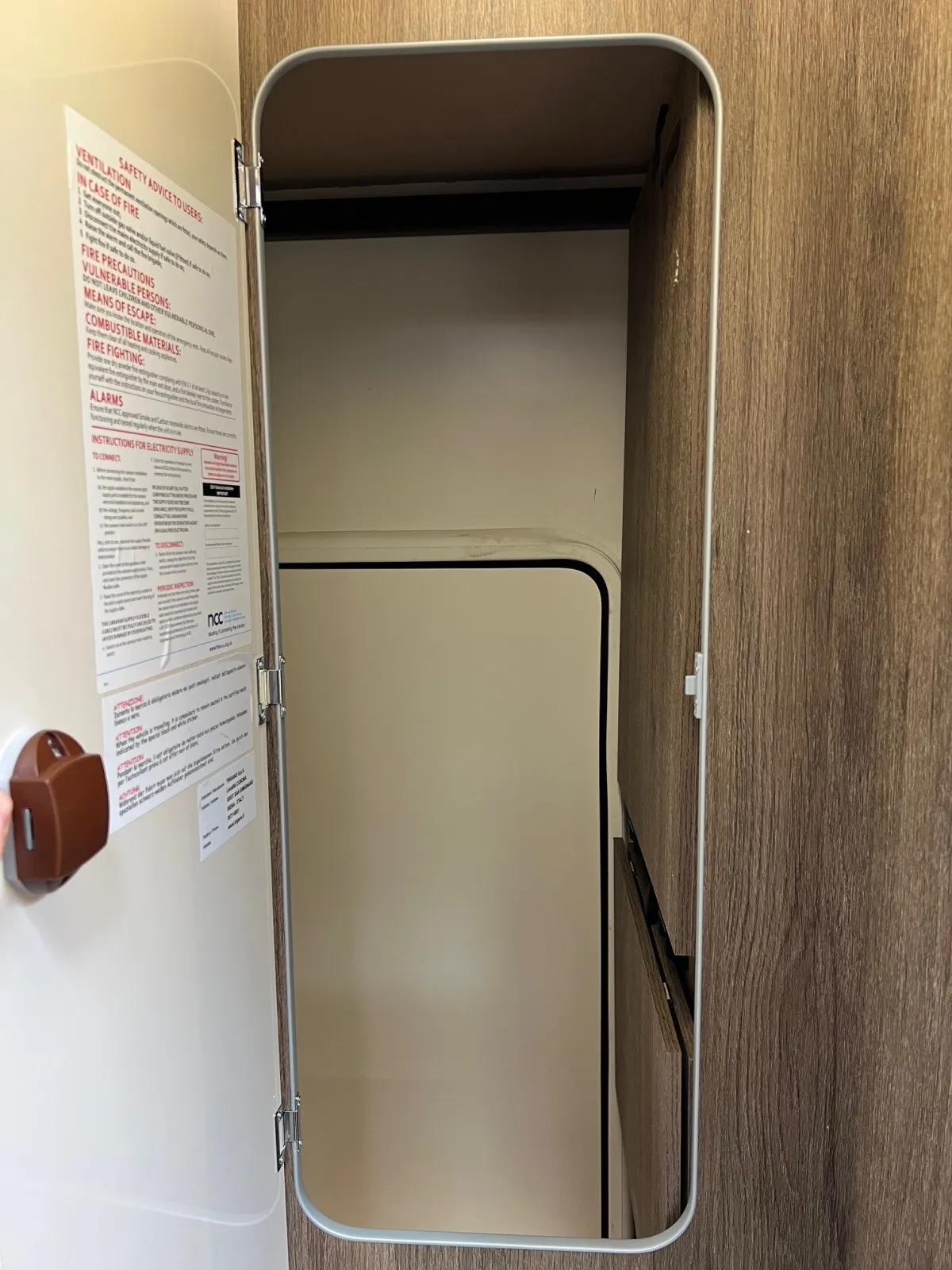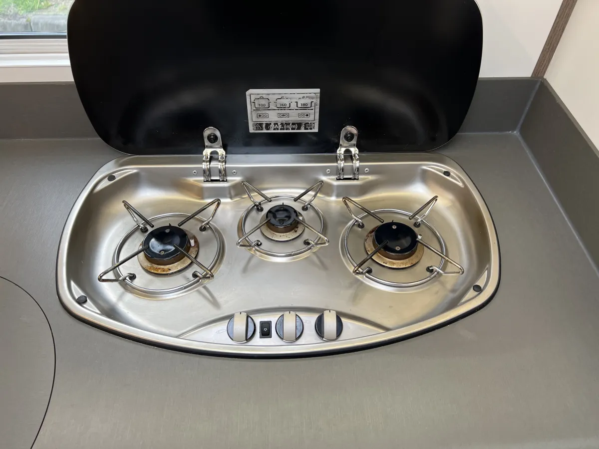 Inside, the layout is cleverly designed to maximize space and comfort. The lounge features swivel cab seats and a dinette that converts into a double bed, while an electric drop-down bed offers a second sleeping area without compromising daytime living. The kitchen is fully equipped with a three-burner gas hob, oven, grill, fridge/freezer, and generous worktop space.