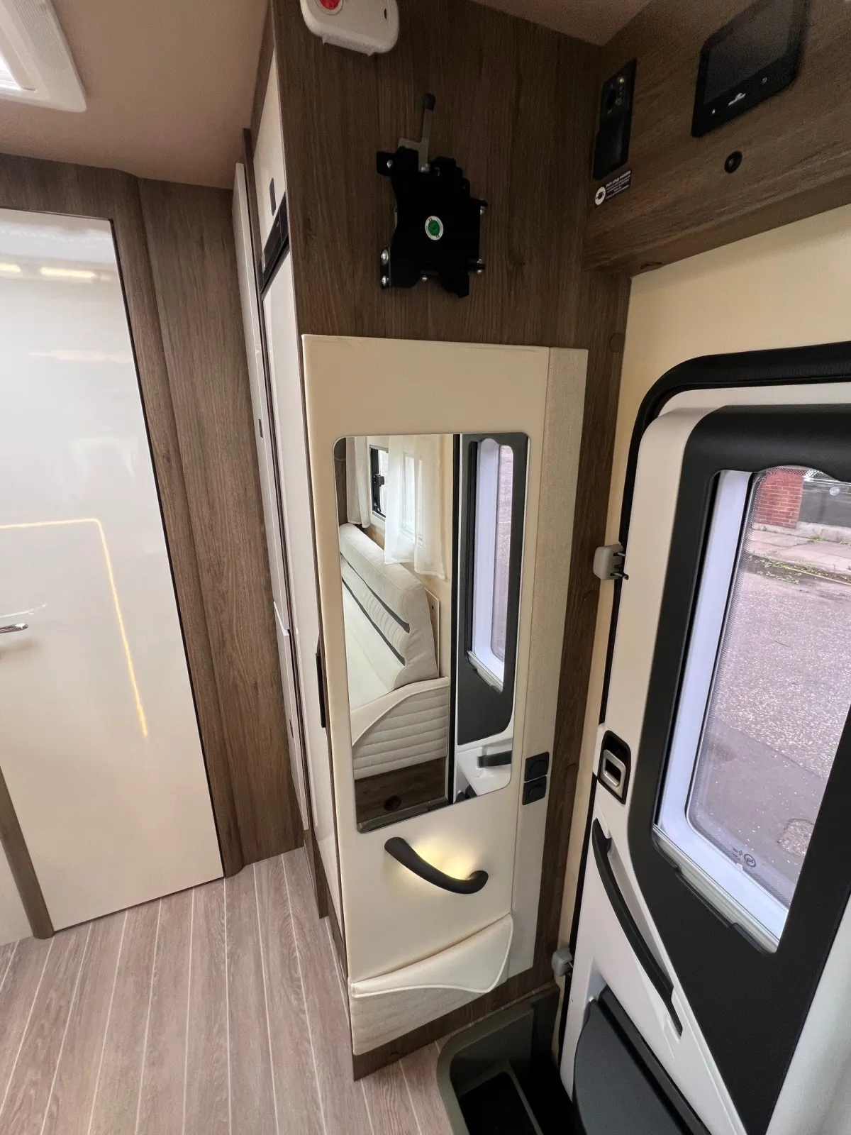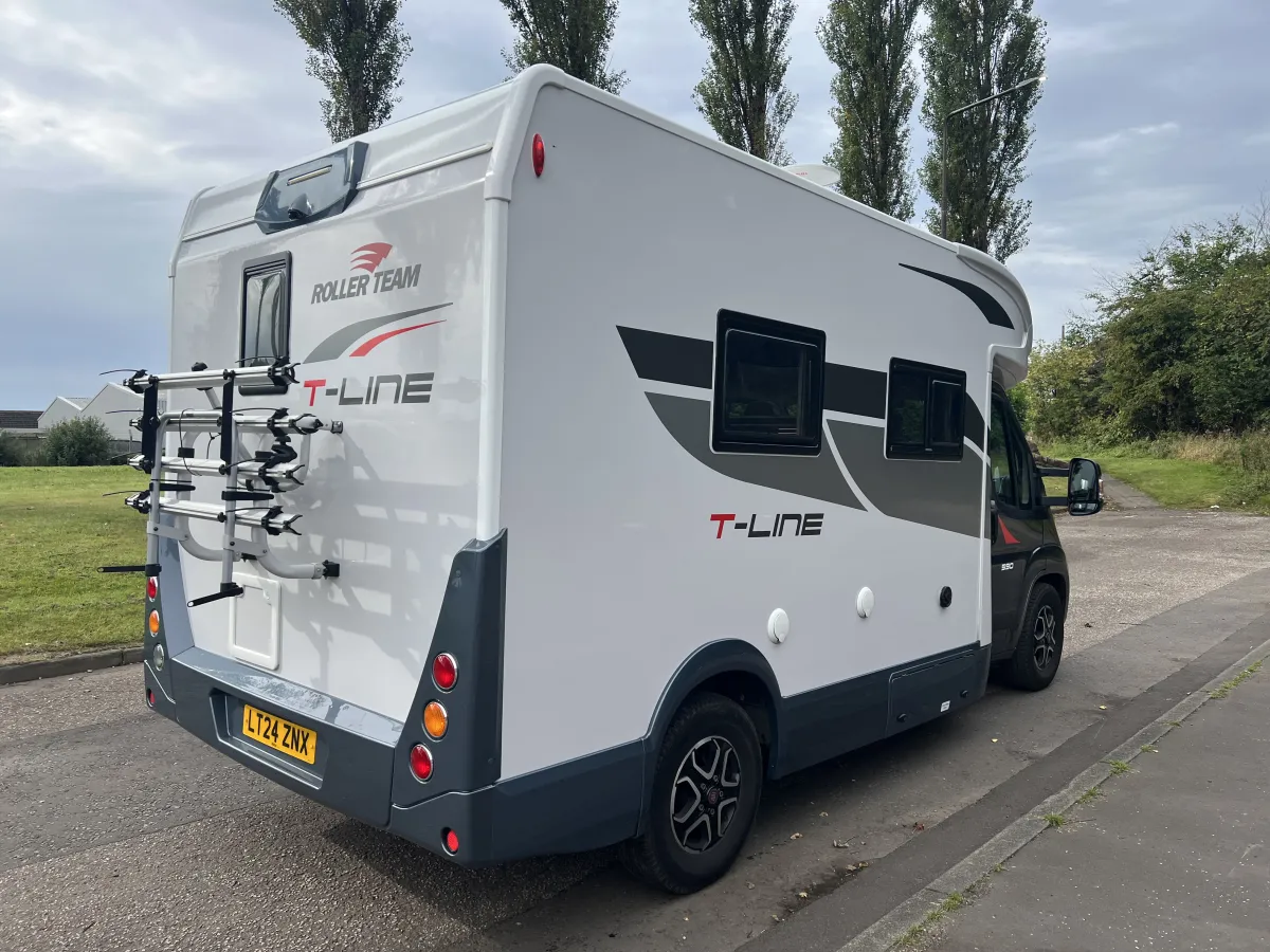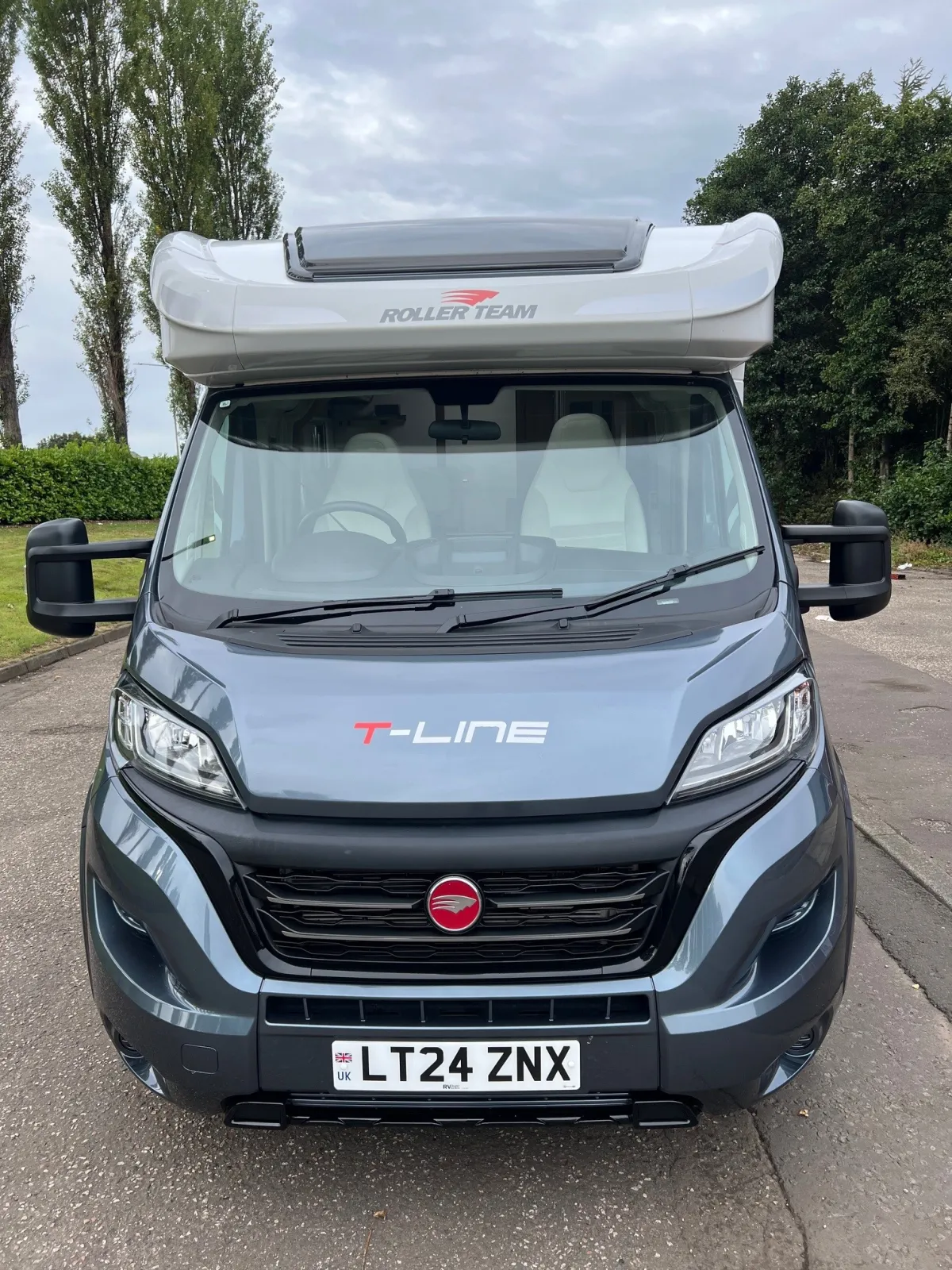Was £65,299. Now £61,495. Save £3,804. The 2024 Roller Team T-Line 590 is a compact motorhome that blends Italian design with practical luxury. Built on the Fiat Ducato chassis and powered by a 2.2L 140 BHP engine paired with a smooth 9-speed automatic gearbox, it delivers a confident drive and is easy to manoeuvre thanks to its sub-six-metre length—ideal for both seasoned travellers and newcomers.