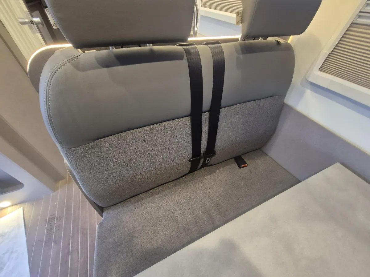 • Sociable Front Lounge with Bench Seating and Integrated Seatbelts + Large Windows and Skylight for Natural Light