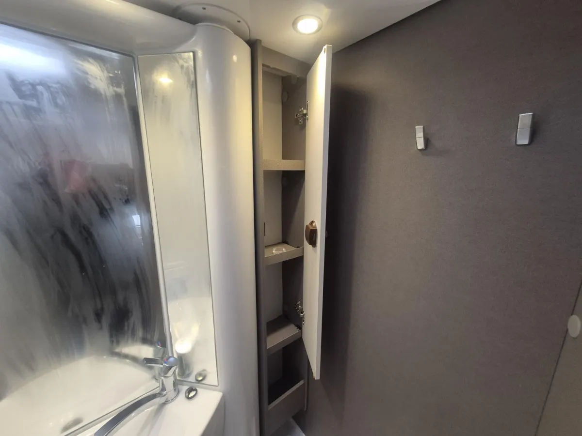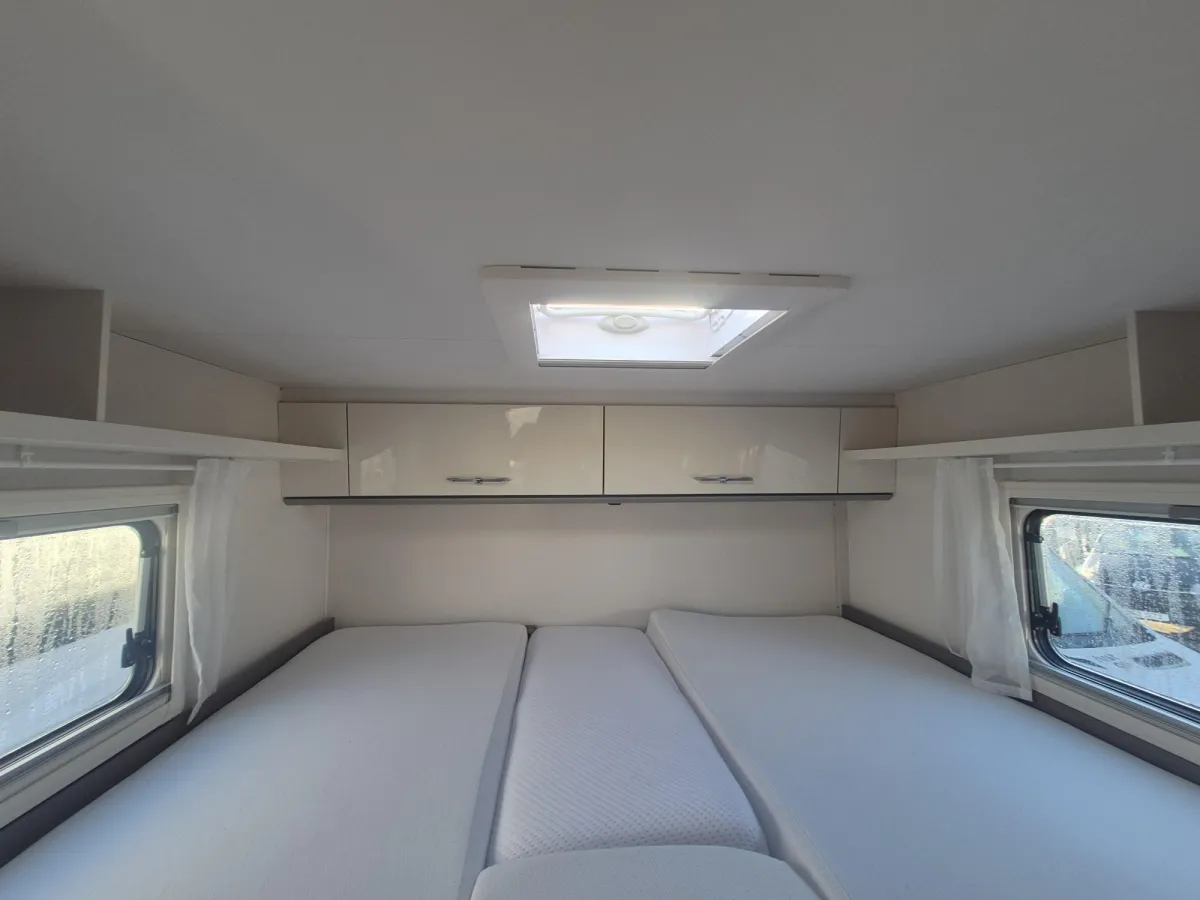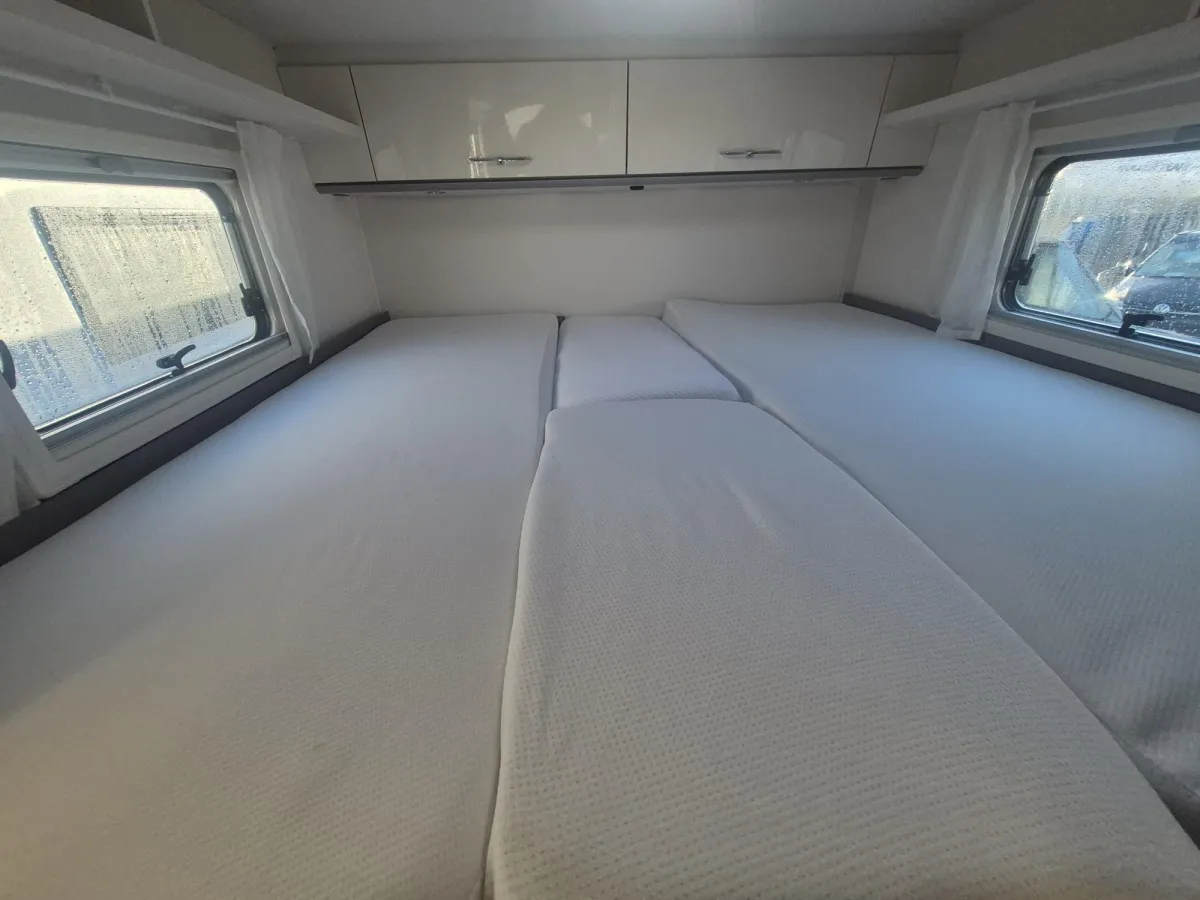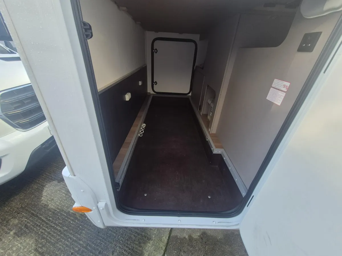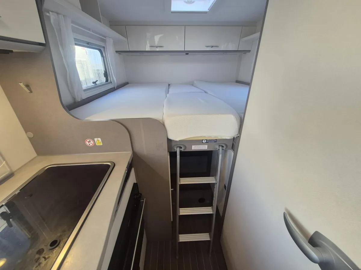 Storage is generous, with a spacious rear garage ideal for bikes, outdoor gear, or bulky items. Overhead lockers and side cupboards throughout the cabin ensure everything has its place. Additional features include modern heating systems, optional solar panels, and a range of driver assistance technologies.