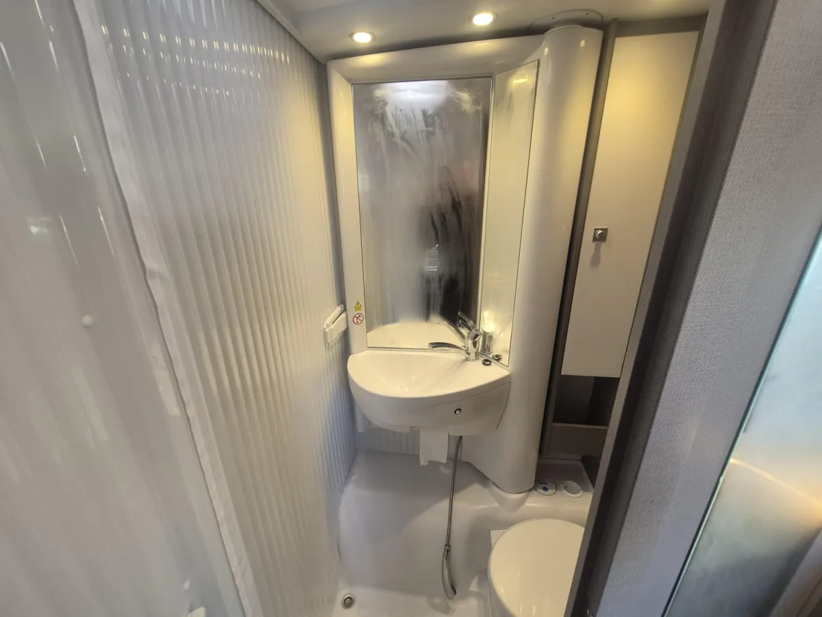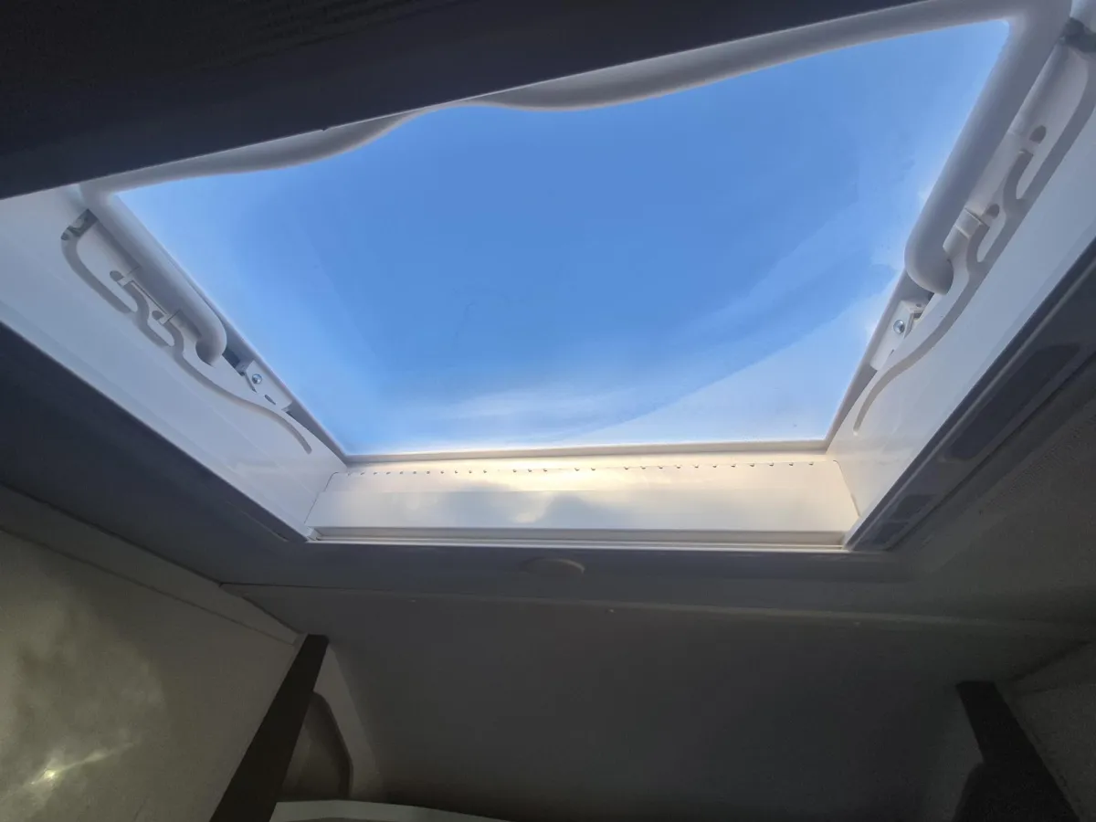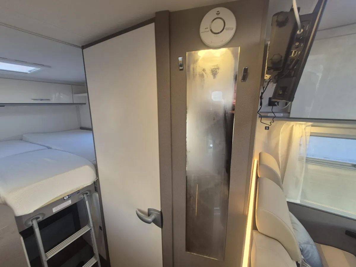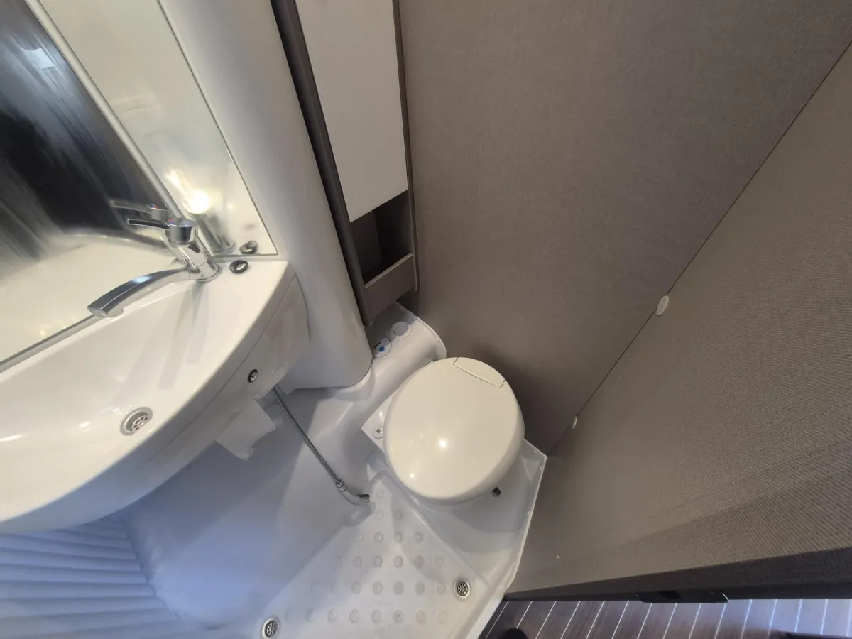 Storage is generous, with a spacious rear garage ideal for bikes, outdoor gear, or bulky items. Overhead lockers and side cupboards throughout the cabin ensure everything has its place. Additional features include modern heating systems, optional solar panels, and a range of driver assistance technologies.