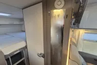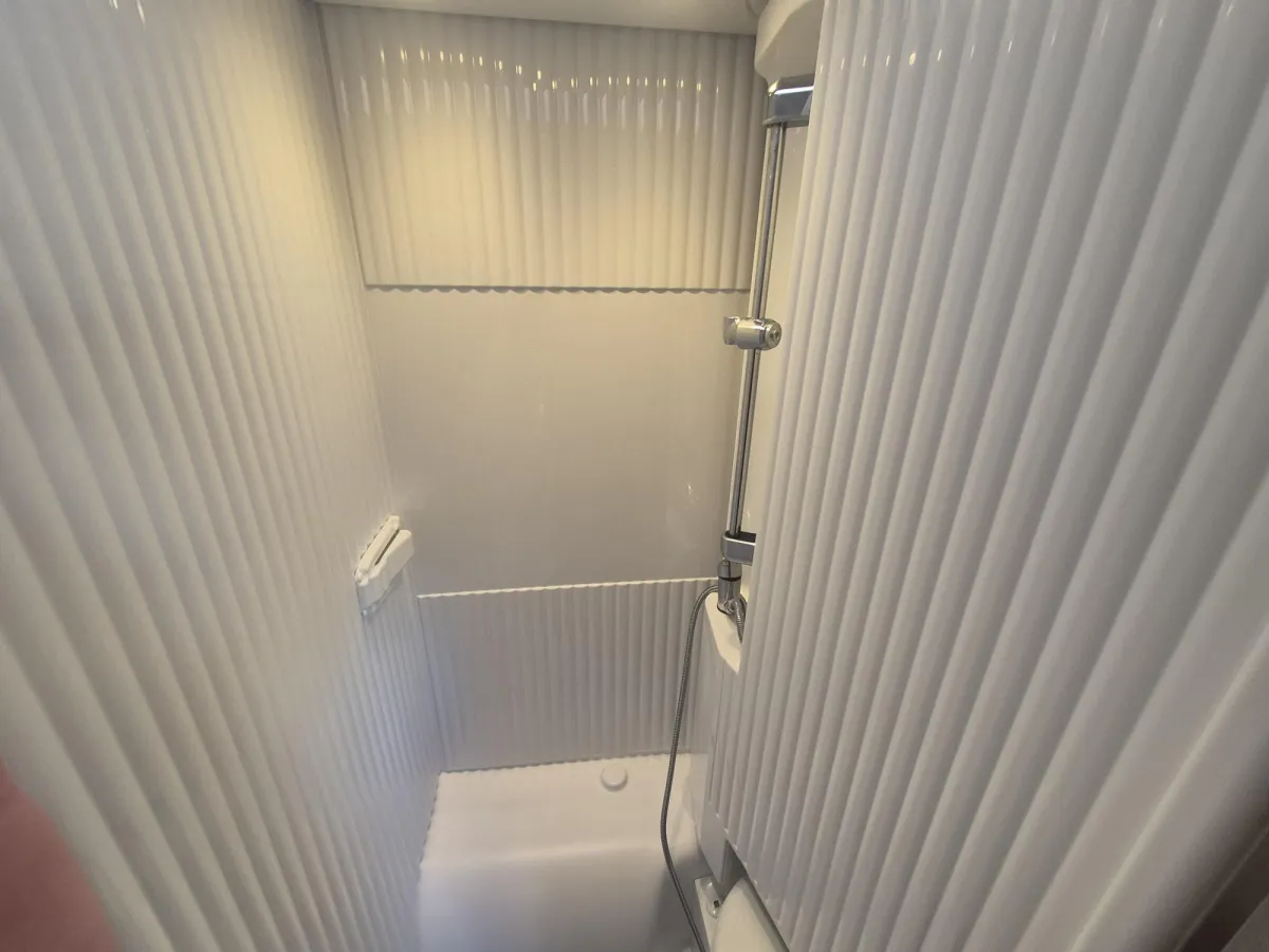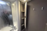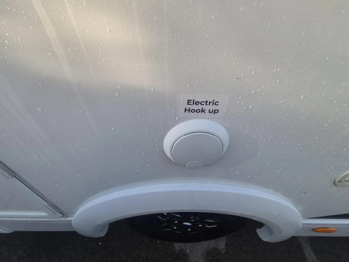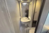 Designed for couples, the V6600SF features twin rear beds that easily convert into a large double, providing flexible sleeping arrangements. The front lounge includes swivel captain chairs and a half-dinette, creating a comfortable space for dining or relaxing. High-gloss white cabinetry, ambient lighting, and clever storage solutions give the interior a bright, modern feel. The innovative Vario washroom uses a swing-wall design to transform the compact space into a full shower, maximizing functionality without compromising comfort.