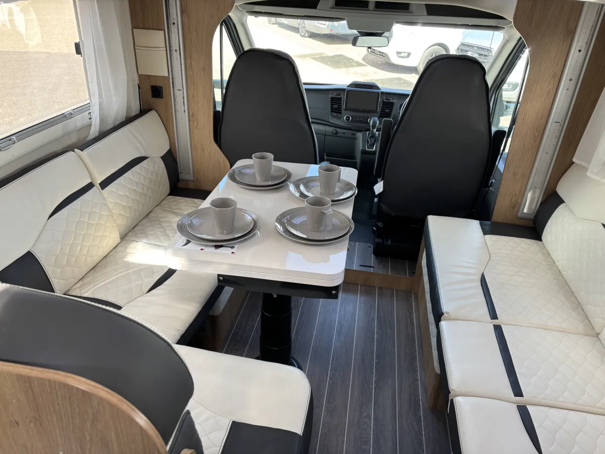 Available for you to view and test drive or reserve today, this Roller Team Auto-Roller 707 Motorhome finished in sleek Italian design offers six berths and 5 belted travel seats—perfect for families or groups seeking adventure!