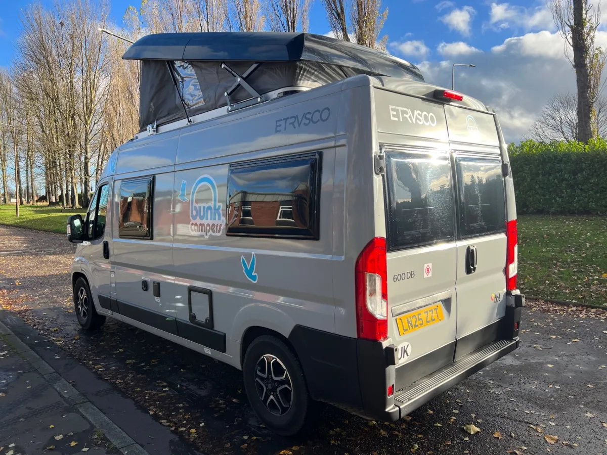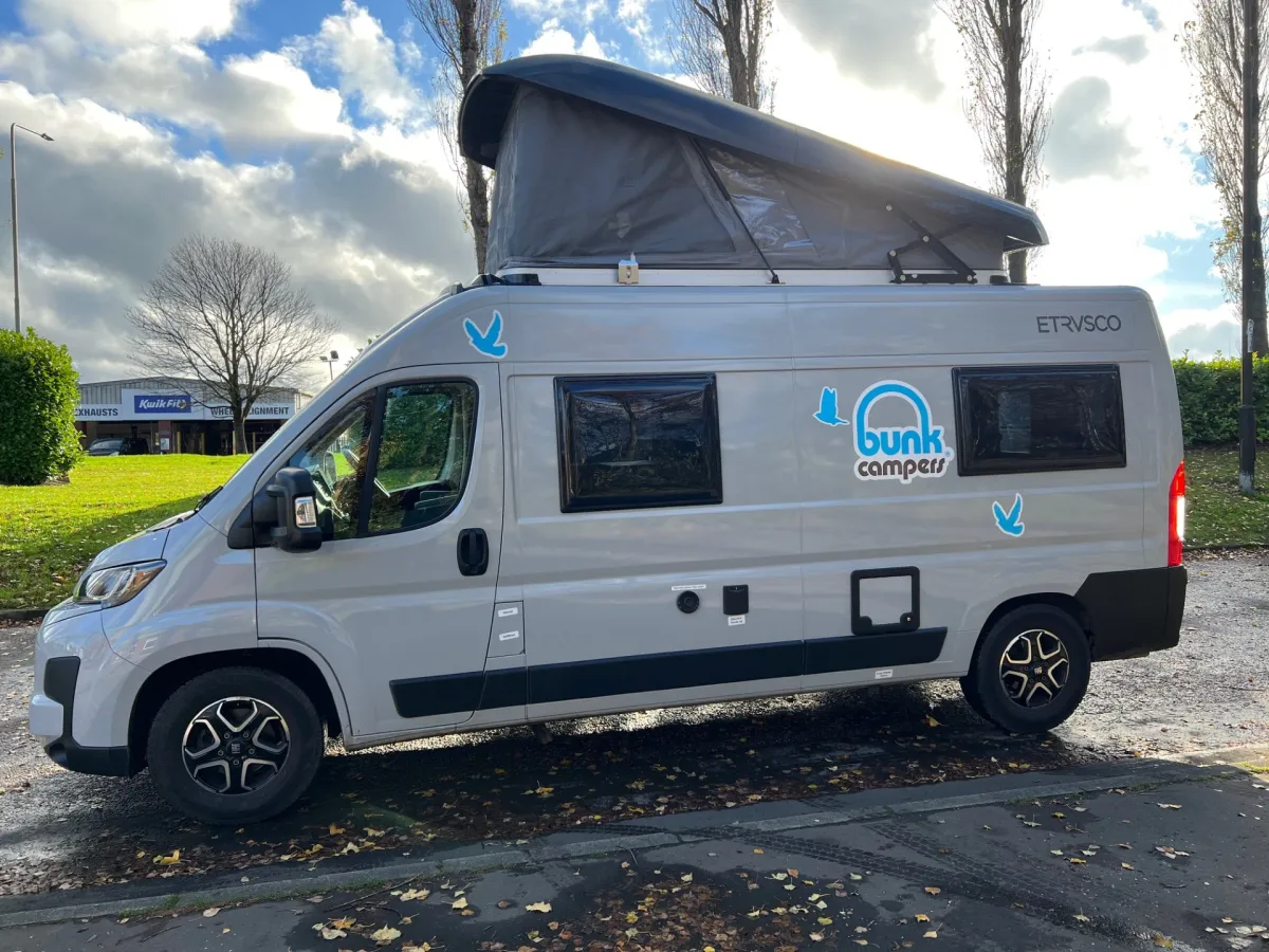 Available for you to view, test drive, or reserve today, the Etrusco CV600DB Pop Top Campervan combines compact agility with versatile comfort—perfect for couples or families seeking freedom on the road!