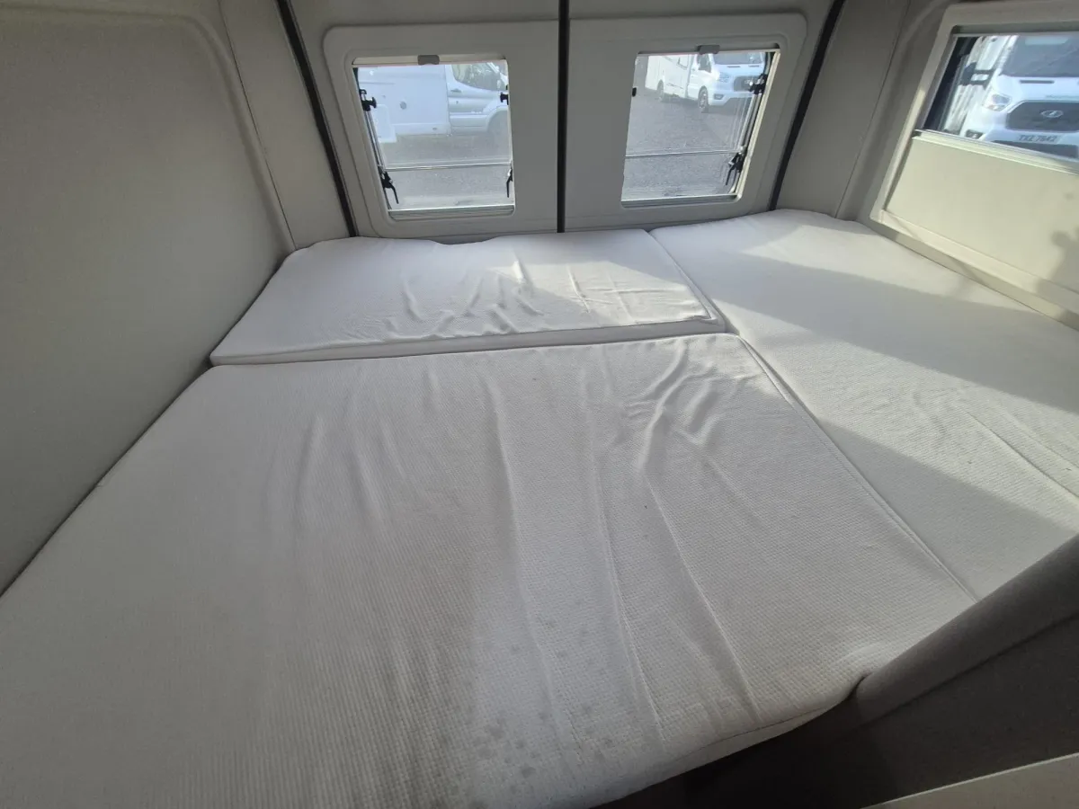- Manageable 5.99-Metre Length for easy driving and parking + Sleeping Space for Up to Four with a fixed rear double bed and additional bunk beds